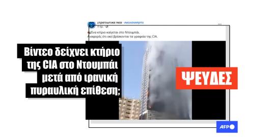 Εικόνα Ιράν Δημοσιεύθηκε στις 06/03/2026 Παλιό βίντεο με φωτιά σε ουρανοξύστη παρουσιάστηκε ψευδώς ως ιρανική επίθεση σε κτήριο της CIA