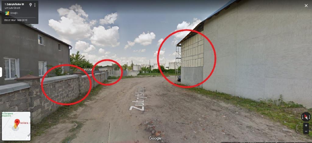 Το AFP αναζήτησε στο Google Earth μια εγκατάσταση υπέργειων δεξαμενών καυσίμων που θα μπορούσε να περιέχει αρκετές δεξαμενές παρατεταγμένες η μία δίπλα στην άλλη, όπως φαίνεται σε ορισμένες φωτογραφίες που δημοσίευσε το πρακτορείο Reuters, και βρήκε μια περιοχή που παρουσιάζει την ίδια διάταξη στο βόρειο τμήμα της ανατολικής περιοχής Lychakivskyi του Lviv, στην οδό Plastova στο Lviv.