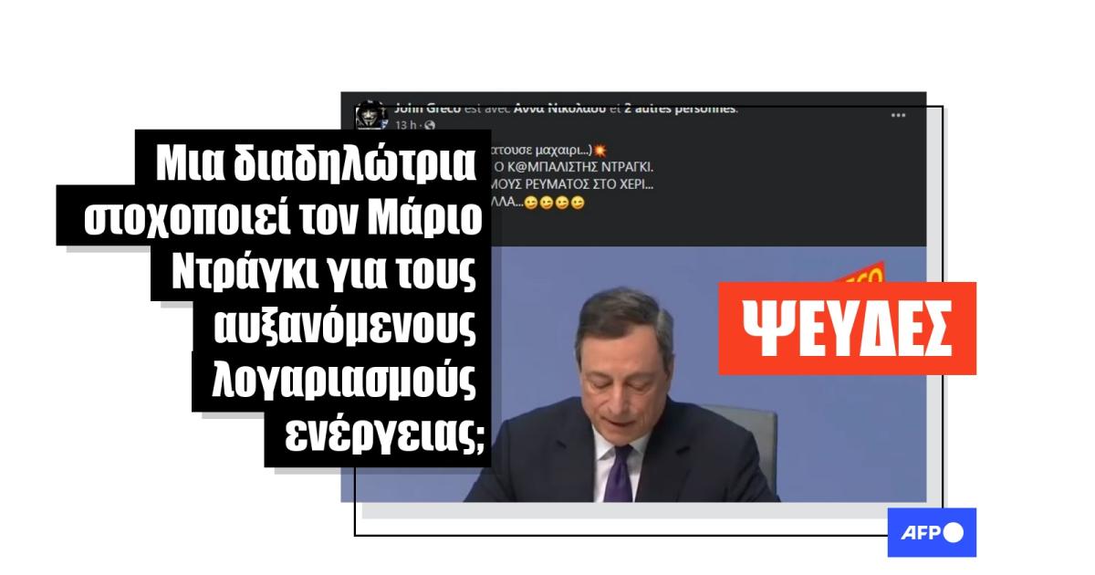 «Ιταλίδα ορμά στον τραπεζίτη Μάριο Ντράγκι για τον δεκαπλασιασμένο λογαριασμού φυσικού αερίου!», αναφέρει μια ανάρτηση στο Facebook στις 20 Σεπτεμβρίου 2022. Ο χρήστης προσθέτει: «Έρχεται η ώρα που θα το πληρώσουν οι υπεύθυνοι για την καταστροφή της Ευρώπης (...)!».