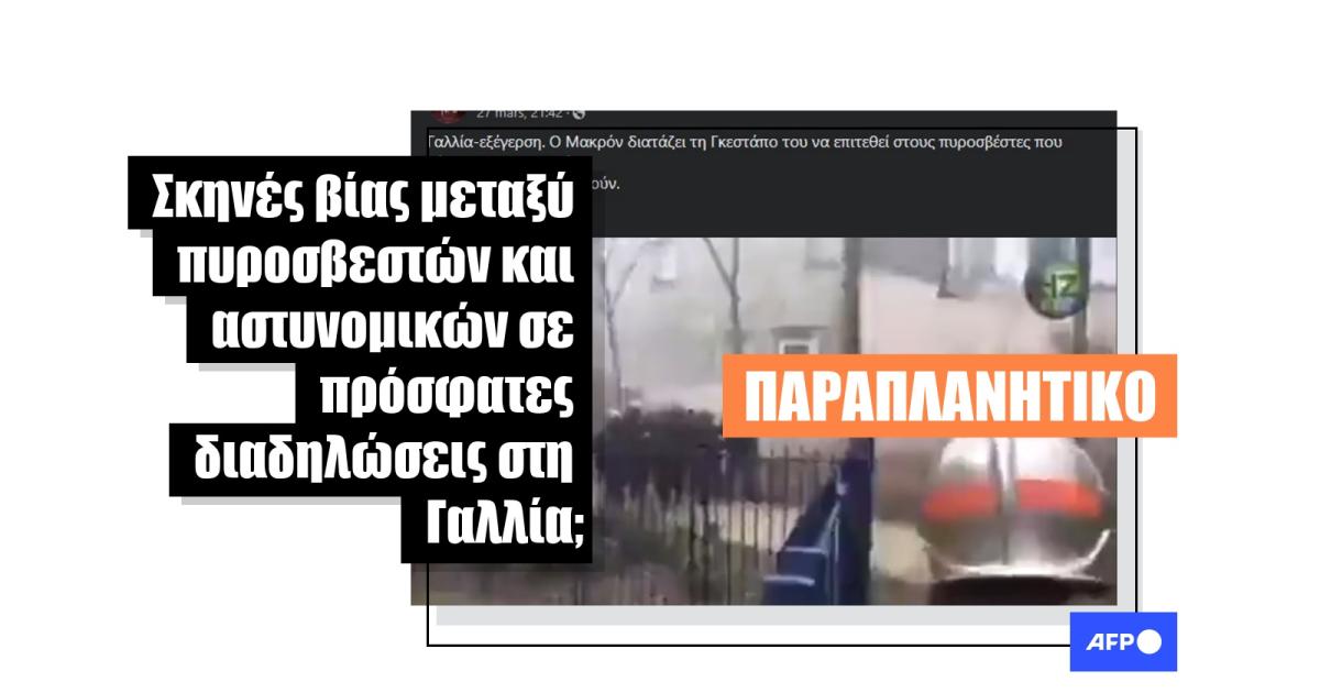 Ένα παρόμοιο βίντεο αναρτήθηκε στο Facebook στα ελληνικά εδώ. Το ίδιο βίντεο κοινοποιήθηκε σε ελληνικούς διαδικτυακούς ιστότοπους, όπως εδώ, εδώ και εδώ, με τον ισχυρισμό ότι δείχνει σκηνές βίας στο περιθώριο των διαδηλώσεων κατά της συνταξιοδοτικής μεταρρύθμισης στη Γαλλία.