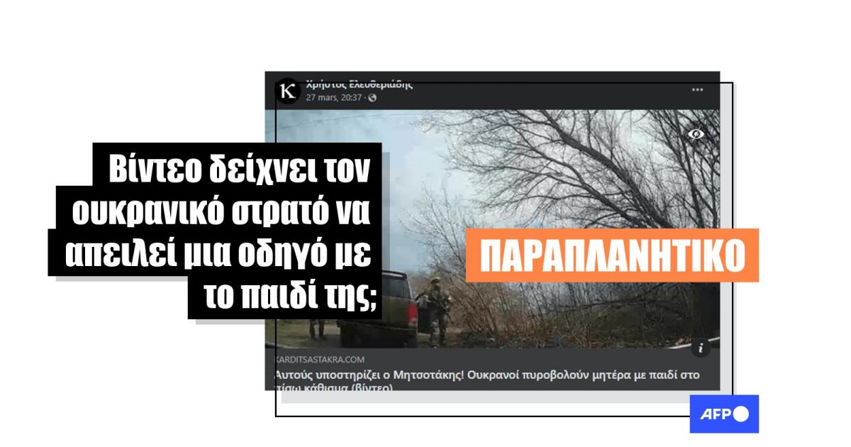Το βίντεο, το οποίο κοινοποιήθηκε με κείμενο που είναι προσβλητικό για την Ουκρανία, είναι προφανώς τραβηγμένο από μια κάμερα αυτοκινήτου (dashboard). Βλέπουμε ένα στρατιωτικό όχημα SUV που φέρει ουκρανική σημαία και ένα παλιό γερμανικό στρατιωτικό σύμβολο να σταματά μία οδηγό σε έναν άδειο επαρχιακό δρόμο. Ένας ένοπλος άνδρας με στρατιωτική στολή πηγαίνει στο όχημα με την κάμερα και βρίζει τον οδηγό επειδή προσπέρασε μια στρατιωτική φάλαγγα. Ακούγεται η φωνή μιας γυναίκας που απαντά στα ρωσικά- ο στρατιώτης την βρίζει και την διατάζει να χρησιμοποιεί την ουκρανική γλώσσα, που είναι η επίσημη γλώσσα στην περιοχή σύμφωνα με αυτόν, αντί για τα ρωσικά. Ο στρατιώτης επιστρέφει στο όχημά του και πυροβολεί επανειλημμένα με το όπλο του. Η γυναίκα ακούγεται ανήσυχη και φοβισμένη και ένα μωρό κλαίει.