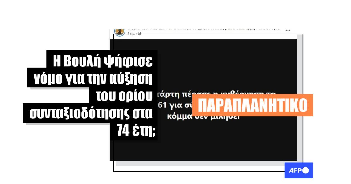 «Την Τετάρτη πέρασε η κυβέρνηση το άρθρο 61 για σύνταξη στα 75 κανένα κόμμα δεν μίλησε!» λέει μια ανάρτηση στο Facebook που δημοσιεύθηκε στις 30 Ιουλίου και κοινοποιήθηκε περισσότερες από 130 φορές.