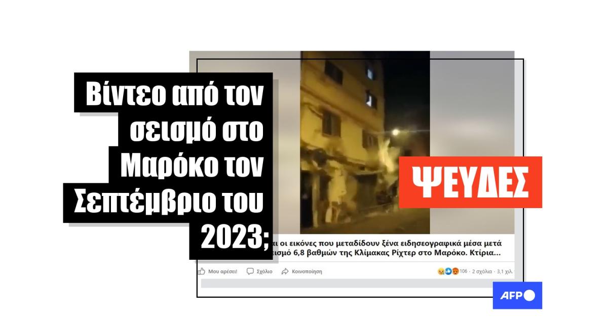 «Συγκλονιστικές είναι οι εικόνες που μεταδίδουν ξένα ειδησεογραφικά μέσα μετά τον καταστροφικό σεισμό 6,8 βαθμών της Κλίμακας Ρίχτερ στο Μαρόκο» λέει η περιγραφή μιας ανάρτησης στην επίσημη σελίδα της εβδομαδιαίας εφημερίδας Πρώτο Θέμα στο Facebook, η οποία δημοσιεύθηκε στις 9 Σεπτεμβρίου.
