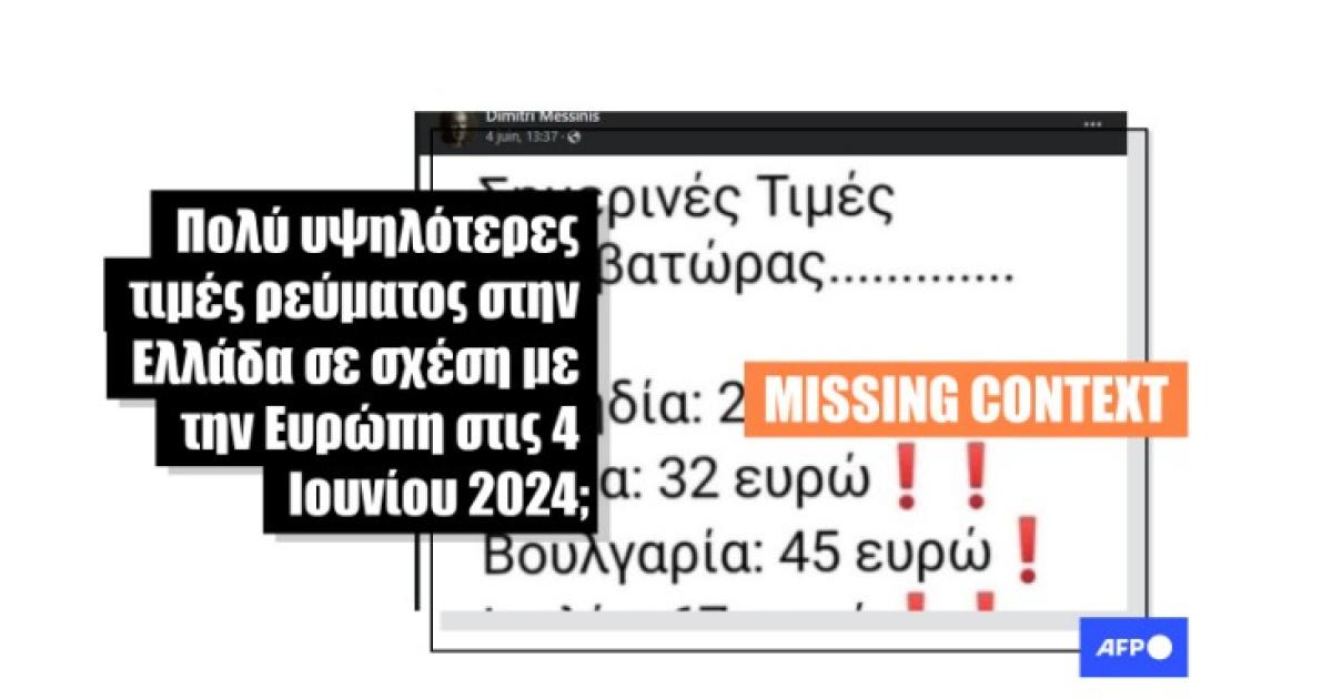Ωστόσο, ο ισχυρισμός που διατυπώνεται στις αναρτήσεις στο Facebook είναι παραπλανητικός, καθώς δεν αντιπροσωπεύει τις τρέχουσες τιμές ηλεκτρικής ενέργειας στην Ελλάδα και την Ευρώπη.