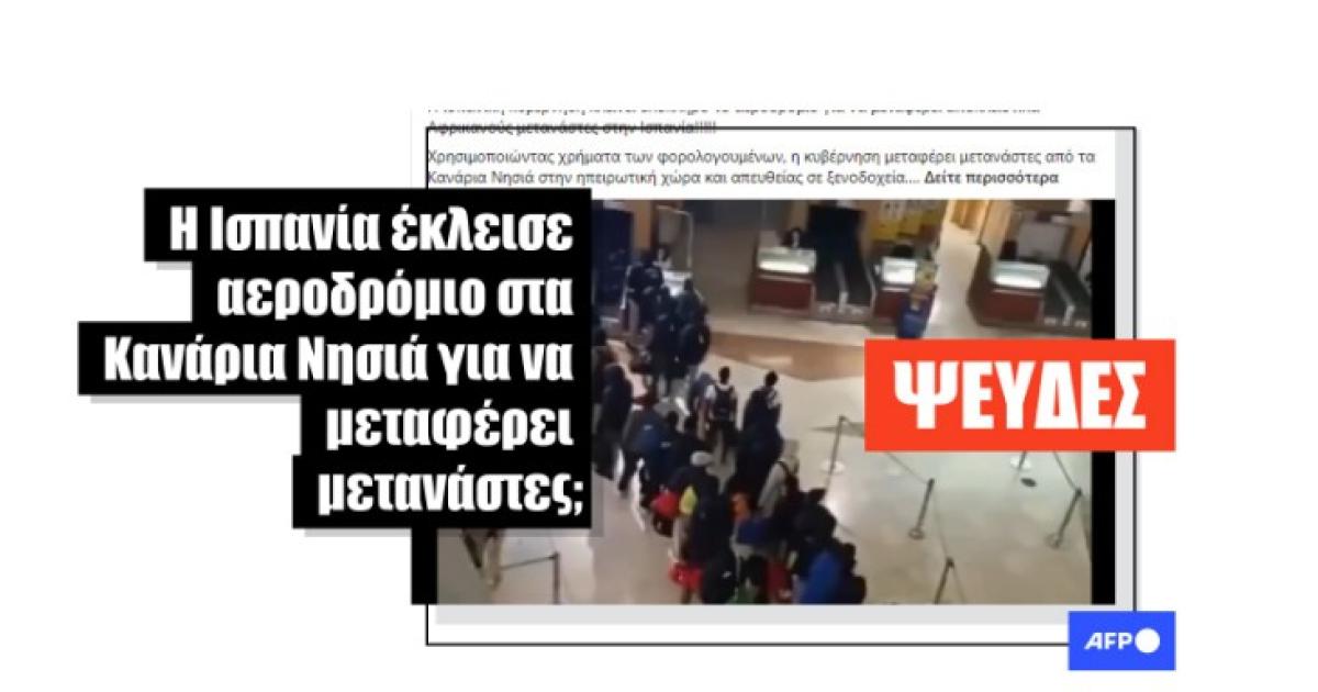 «Η ισπανική κυβέρνηση κλείνει ολόκληρο το αεροδρόμιο για να μεταφέρει αποκλειστικά Αφρικανούς μετανάστες στην Ισπανία!!!!! Χρησιμοποιώντας χρήματα των φορολογουμένων, η κυβέρνηση μεταφέρει μετανάστες από τα Κανάρια Νησιά στην ηπειρωτική χώρα και απευθείας σε ξενοδοχεία», αναφέρει αυτή η ανάρτηση στο Facebook από τις 30 Αυγούστου, η οποία συνοδεύεται από ένα βίντεο που δείχνει μια ουρά ανθρώπων σε ένα αεροδρόμιο.