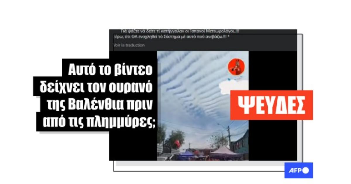 Η έρευνα του Γαλλικού Πρακτορείου Ειδήσεων (AFP) διαπίστωσε ότι τα βίντεο που κοινοποιούν ασυνήθιστους σχηματισμούς σύννεφων δεν έχουν άμεση σχέση με την καταστροφή στη νοτιοανατολική Ισπανία. Είχαν γυριστεί στη Χιλή και την Κίνα.
