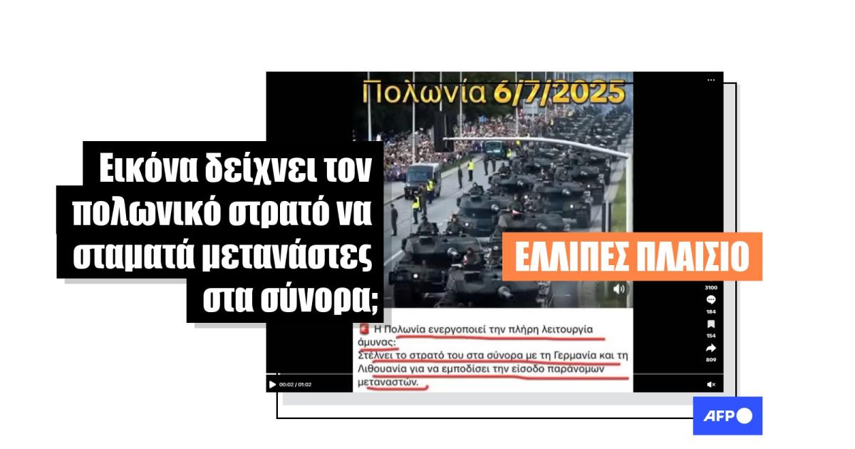 «Πολωνία 6/7/2025. Η Πολωνία ενεργοποιεί την πλήρη λειτουργία άμυνας: Στέλνει το στρατό του στα σύνορα με τη Γερμανία και τη Λιθουανία για να εμποδίσει την είσοδο παράνομων μεταναστών», γράφει μια ανάρτηση στο TikTok από τις 9 Ιουλίου 2025, η οποία κονοποιήθηκε περισσότερες από 800 φορές.
