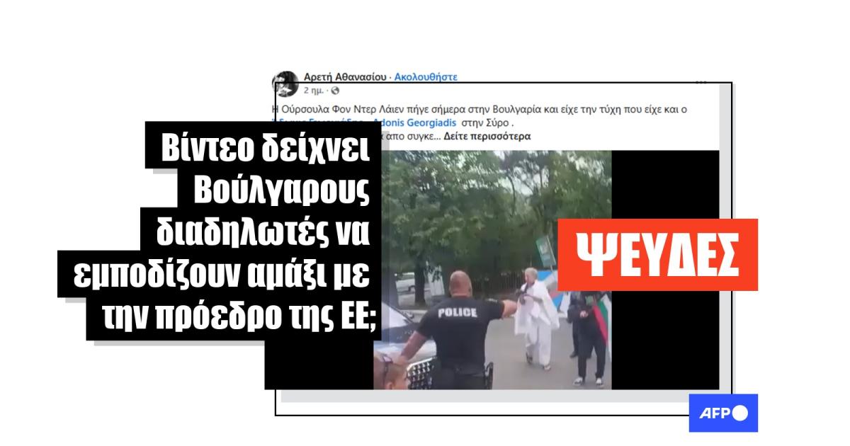 «Η Ούρσουλα Φον Ντερ Λάιεν πήγε σήμερα στην Βουλγαρία και είχε την τύχη που είχε και ο Άδωνις Γεωργιάδης - Adonis Georgiadis στην Σύρο. Αποδοκιμάστηκε έντονα απο συγκεντρωμένους πολίτες που της φώναζαν: "Είσαι Ναζί εγκληματίας"!», γράφει αυτή η ανάρτηση στα ελληνικά στο Facebook από τις 31 Αυγούστου 2025, η οποία έχει κοινοποιηθεί από τότε περισσότερες από 650 φορές.