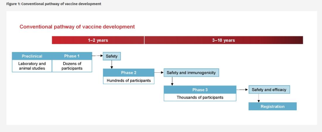 Σύμφωνα με τον Δρ. Λέναρντ Λι, καθηγητή στο Πανεπιστήμιο της Οξφόρδης και σύμβουλο στην ιατρική ογκολογία, η ανάπτυξη και η έγκριση των εμβολίων ακολουθούν μια σαφώς καθορισμένη ακολουθία. Σε απαντήσεις μέσω μηνύματος ηλεκτρονικού ταχυδρομείου προς το AFP στις 16 και 22 Σεπτεμβρίου 2025, ο ειδικός εξήγησε ότι η διαδικασία ξεκινά με προκλινικές μελέτες σε εργαστήριο και τη χρήση ζωικών μοντέλων για την αξιολόγηση της ανοσολογικής απόκρισης και της βασικής ασφάλειας. Οι προκλινικές δοκιμές ακολουθούνται από ιατρικές δοκιμές με στόχο την αξιολόγηση του δυναμικού μιας θεραπείας σε ανθρώπους, συνήθως σε τρεις φάσεις.