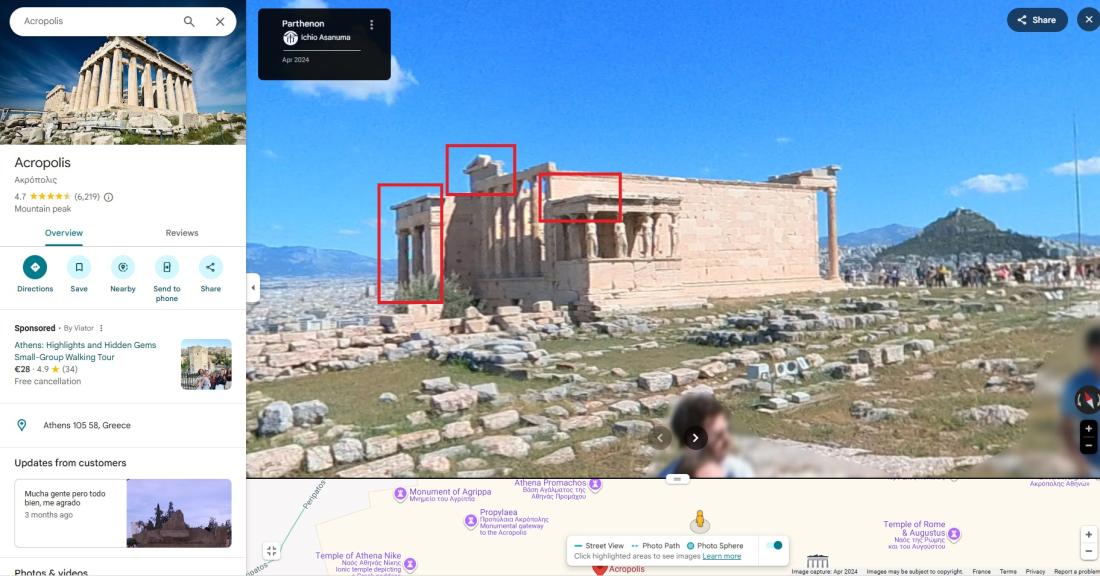 Επιπλέον, αυτό που φαίνεται να είναι ο Παρθενώνας και οι Καρυάτιδες στο βίντεο δεν ανταποκρίνεται στην πραγματική εμφάνιση των μνημείων. Οι Καρυάτιδες βρίσκονται απέναντι από τον Παρθενώνα, όχι δίπλα του, και κοσμούν το Ερέχθειο, έναν αρχαίο ναό στη βόρεια πλευρά της Ακρόπολης.