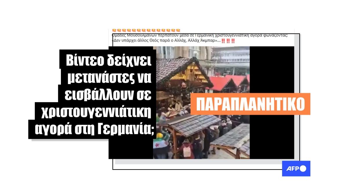 Στη Γερμανία υπάρχει μια συνεχιζόμενη συζήτηση σχετικά με την ασφάλεια των χριστουγεννιάτικων αγορών μετά από ορισμένες θανατηφόρες επιθέσεις τα τελευταία χρόνια. Αυτό έχει οδηγήσει στη διάδοση αρκετών αβάσιμων ισχυρισμών στο διαδίκτυο, με τον πιο πρόσφατο να αφορά ένα βίντεο που υποτίθεται ότι δείχνει «ομάδες Μουσουλμάνων» σε χριστουγεννιάτικη αγορά της Γερμανίας να φωνάζουν «Δεν υπάρχει άλλος Θεός παρά ο Αλλάχ». Ωστόσο, το βίντεο δείχνει μια ειρηνική πομπή στην πόλη Έσσεν στις 8 Δεκεμβρίου 2024 για τον εορτασμό της πτώσης του πρώην Σύρου προέδρου Μπασάρ αλ-Άσαντ. Σύμφωνα με τις αρχές, η διαδήλωση πραγματοποιήθηκε χωρίς επεισόδια.