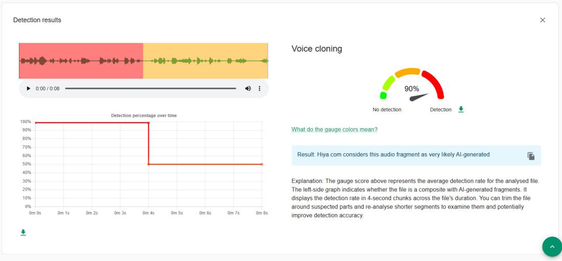Η ανάλυση έδειξε ότι υπάρχει 90% πιθανότητα ο ήχος να έχει δημιουργηθεί τεχνητά.