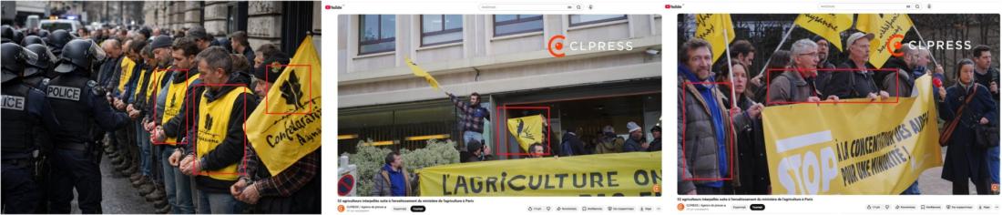 Το AFP συνέκρινε επίσης την κοινοποιημένη εικόνα με πλάνα που δημοσίευσε το γαλλικό πρακτορείο ειδήσεων CLPRESS, το οποίο ανέφερε ότι 52 αγρότες συνελήφθησαν «μετά την κατάληψη του Υπουργείου Γεωργίας στο Παρίσι» στις 14 Ιανουαρίου 2026.