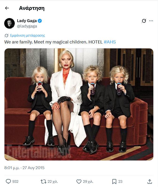 Η αρχική φωτογραφία δημοσιεύτηκε επίσης από την ίδια την Γκάγκα σε μια ανάρτηση στο X στις 27 Αυγούστου 2015.