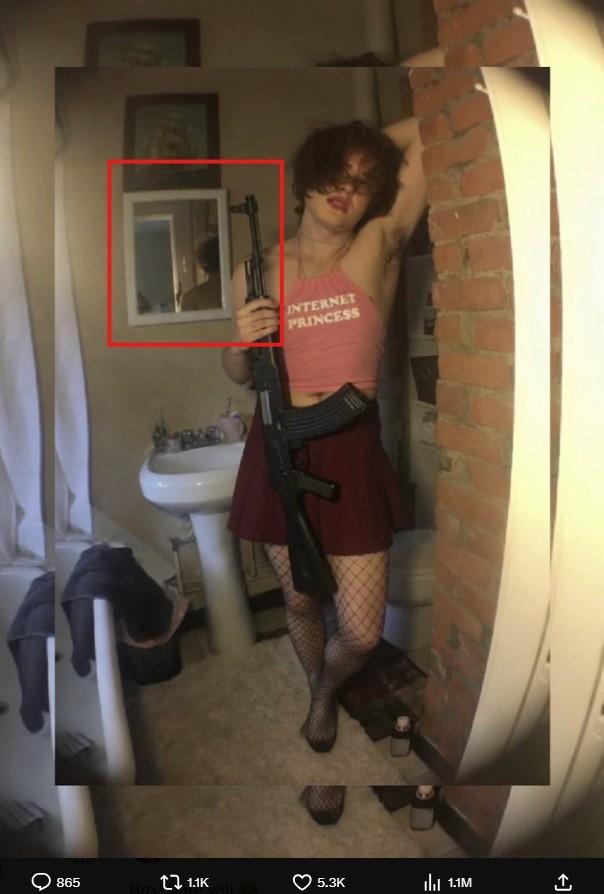Διαδικτυακά άρθρα με θέμα το προφίλ της δράστιδας συμπεριέλαβαν και μια άλλη εικόνα που δείχνει ένα άτομο να κρατά ένα όπλο και να φοράει ένα ροζ μπλουζάκι με τη φράση «πριγκίπισσα του διαδικτύου».