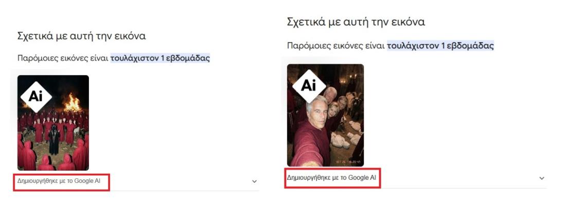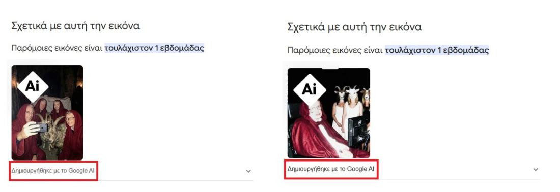 Μια αντίστροφη αναζήτηση εικόνας χρησιμοποιώντας όλες τις εικόνες στο Google δείχνει ότι, στην ενότητα «Σχετικά με αυτή την εικόνα», εμφανίζεται η ετικέτα «Δημιουργήθηκε με το Google AI».