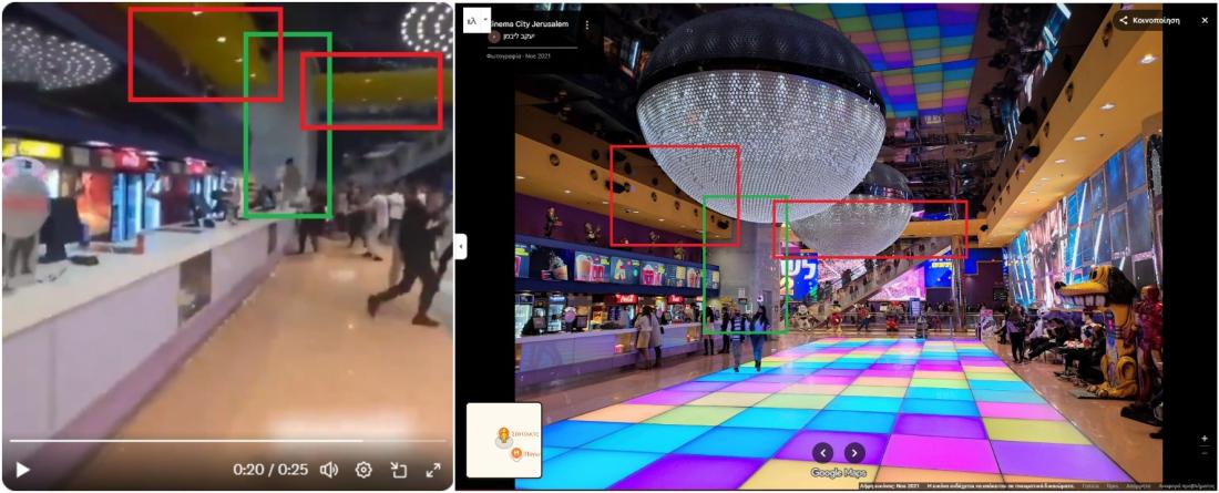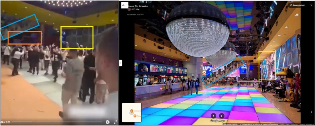 Συγκεκριμένα, η σύγκριση των στιγμιότυπων οθόνης μεταξύ μιας εικόνας στους Χάρτες Google από τον Νοέμβριο του 2021 (αρχειοθετημένη εδώ) και του κοινοποιημένου βίντεο έδειξε κοινά στοιχεία, όπως μια κυλιόμενη σκάλα στο βάθος, χαρακτηριστικά σχήματα κάτω από αυτή και ορισμένα πλακάκια στον τοίχο.