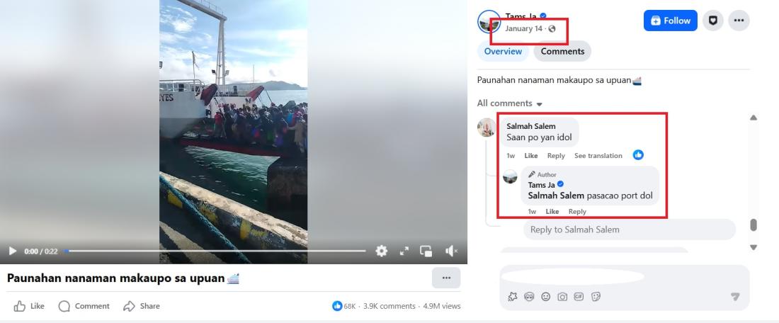 Στα σχόλια της ανάρτησης στο Facebook, ένας χρήστης ρωτάει πού βρίσκεται η τοποθεσία, και το άτομο που κοινοποίησε το βίντεο απαντά ότι πρόκειται για το «Λιμάνι Πασακάο».